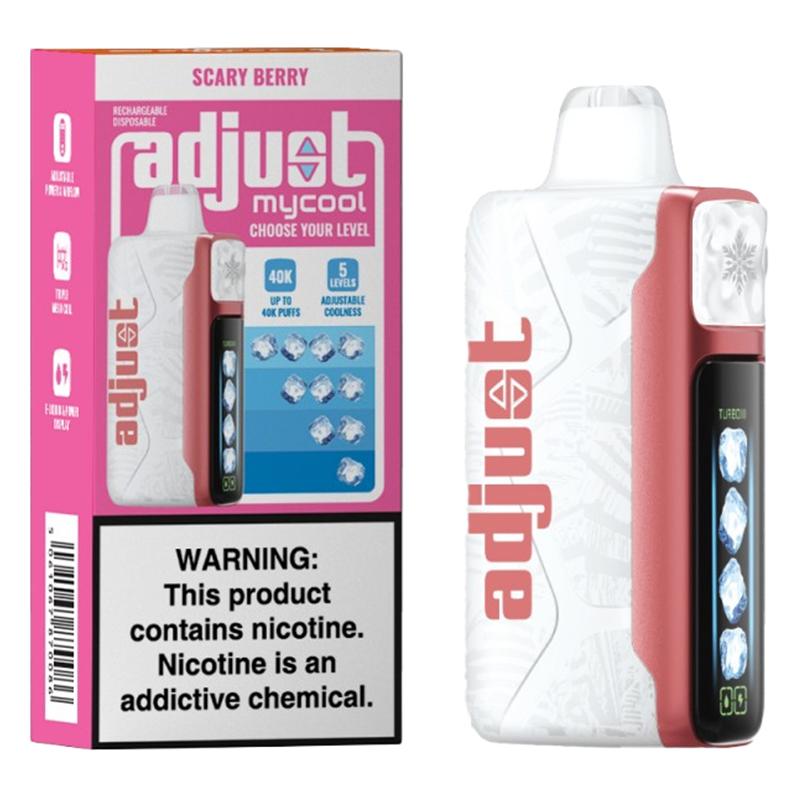 ADJUST MYCOOL DISPOSABLE 40000PF SCARY BERRY (RED RASPBERRIES STRAWBERRY BERRIES) – BOX OF 5