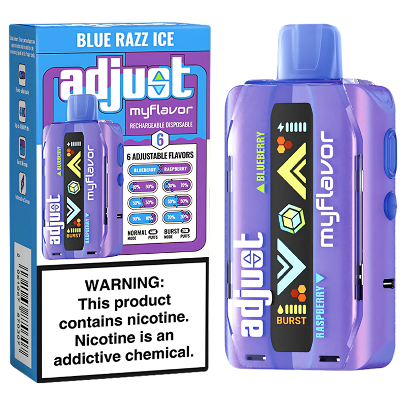 ADJUST MYFLAVOR DISPOSABLE 40000PF BLUE RAZZ ICE (BLUEBERRY & RASPBERRY) -BOX OF 5