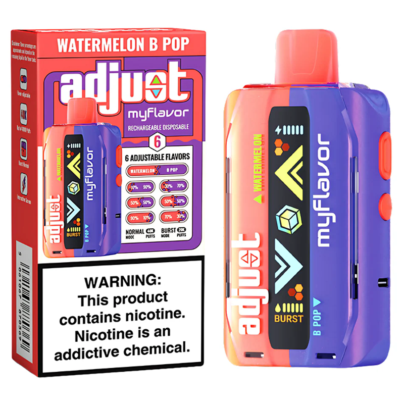 Be the first to review “ADJUST MYFLAVOR DISPOSABLE 40000PF WATERMELON & B POP -BOX OF 5”